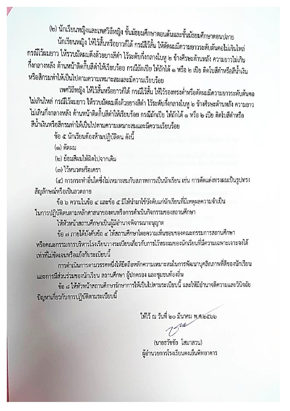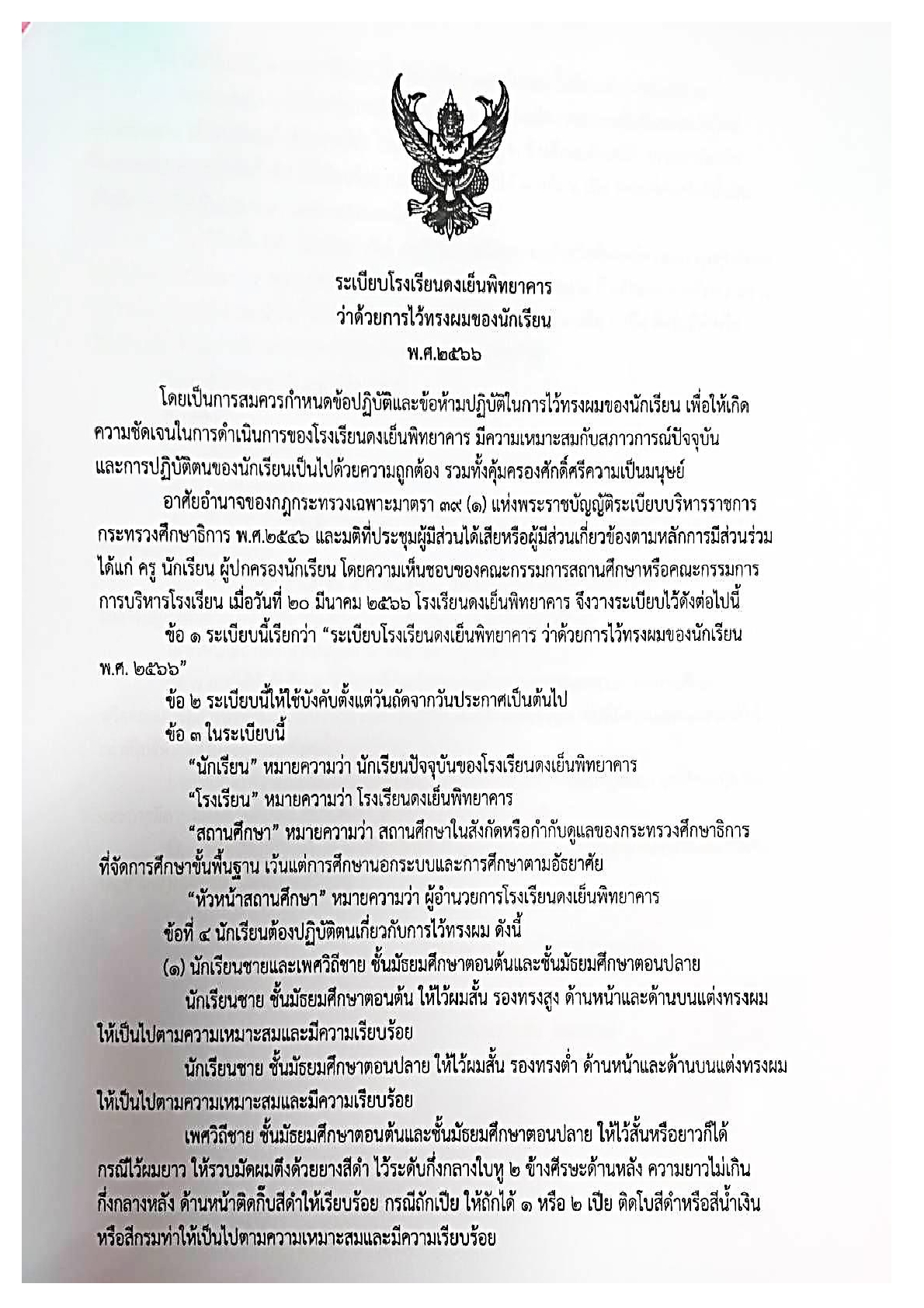 ระเบียบว่าด้วยการไว้ทรงผมของนักเรียน พ.ศ.2566